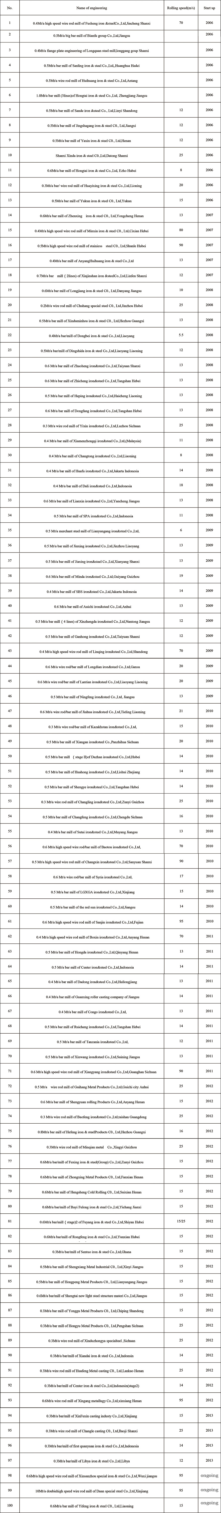 Achievements of rolling mill products